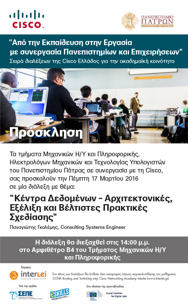 Αναρτήθηκε από garofala. Πέμπτη, Ιούνιος 16, 2016 - 14:14Με βαθιά θλίψη οι φοιτητές, οι καθηγητές και οι εργαζόμενοι του Τμήματος Μηχανικών Η/Υ και Πληροφορικής πληροφορήθηκαν την τραγική είδηση της απώλειας του φοιτητή του Τμήματος Βασιλείου Γιαννακόπουλου.